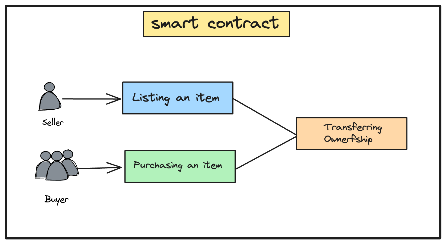 Let's dive into the architecture of the marketplace dapp and its components.